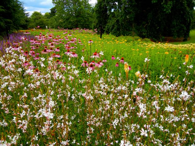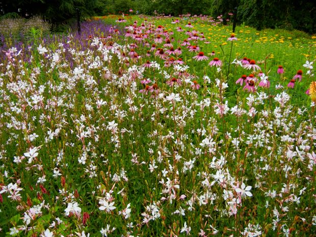 Mixed against backdrop of Echinacea Gaura Lindheimeri at Kew Gardens